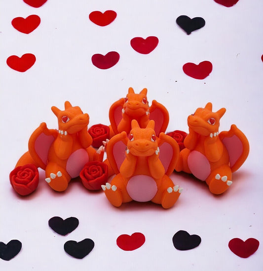 Valentine Charizard With Heart Eyes - Valentine's Day Gift For Her - Pokemon Rose Petal Action Figure - 3D Printed Charmander Chameleon Toy