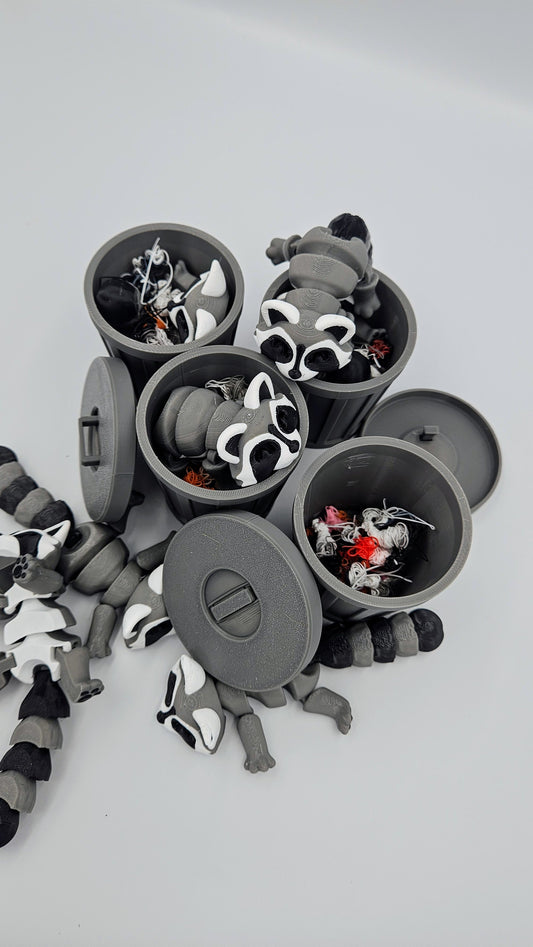 Trash Raccoon Articulating Fidget Toy - Includes Trash Can and Lid - ADHD, Autism, Relief Anxiety - Articulated Joints for Kids and Adults