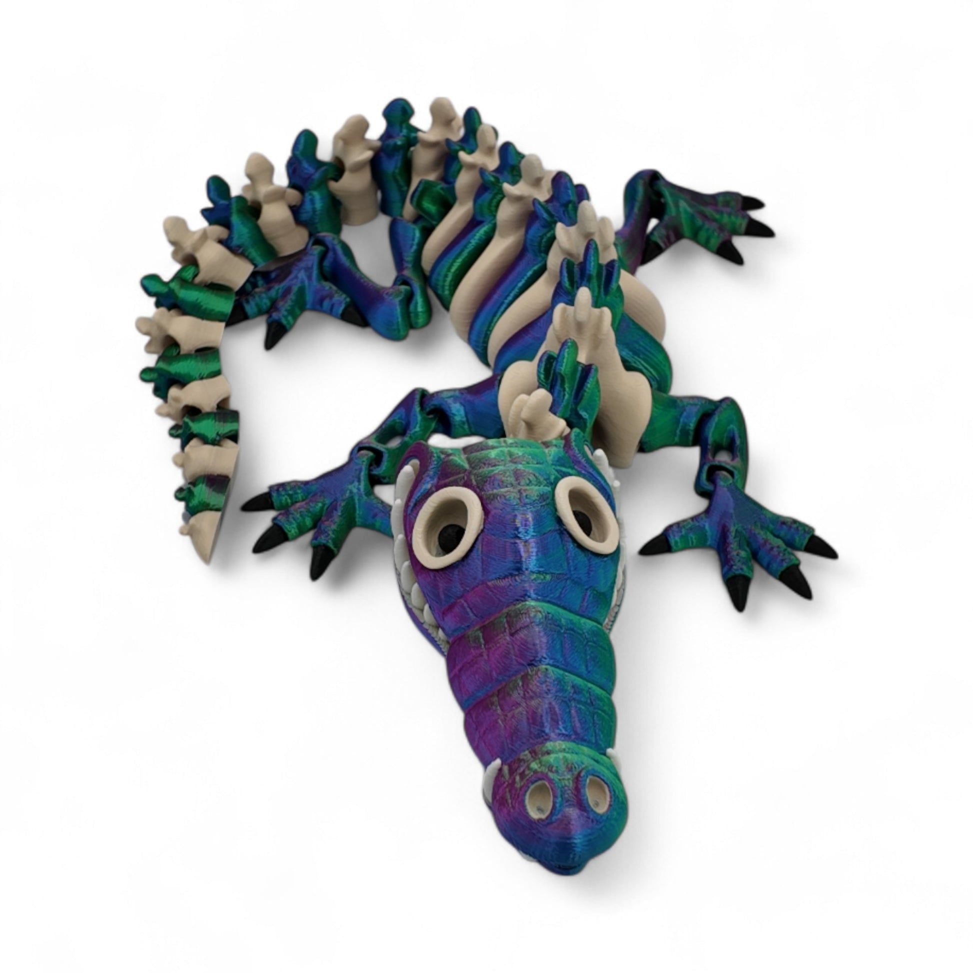 Unleash prehistoric power and modern relaxation with the Adult Skeleton Crocodile – a bone-themed, fully articulating figurine printed in eye-catching vibrant colors. Designed for motion and display, this skeletal beast offers both a bold visual statement and calming fidget functionality.