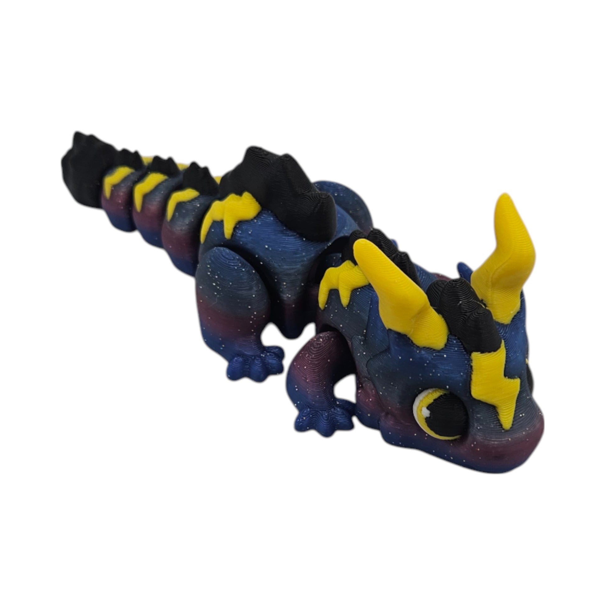 Charge up your collection with the Baby Lightning Dragon, a striking 3D printed figurine with articulating joints and electric detail. Designed for movement and relaxation, this miniature dragon features flowing segmented joints, vibrant lightning-inspired textures, and smooth articulation—perfect for fidgeting, posing, or fantasy decor.