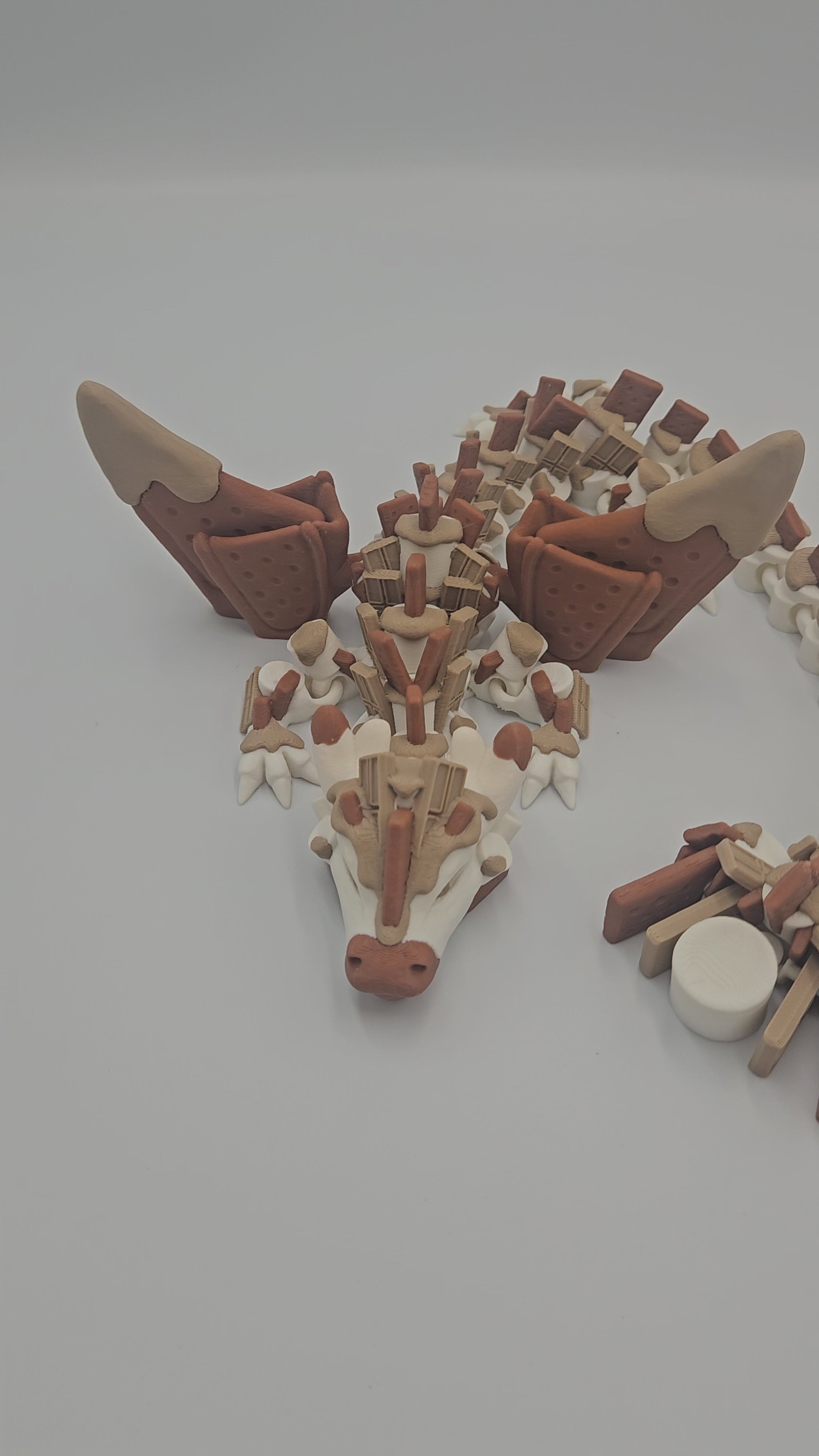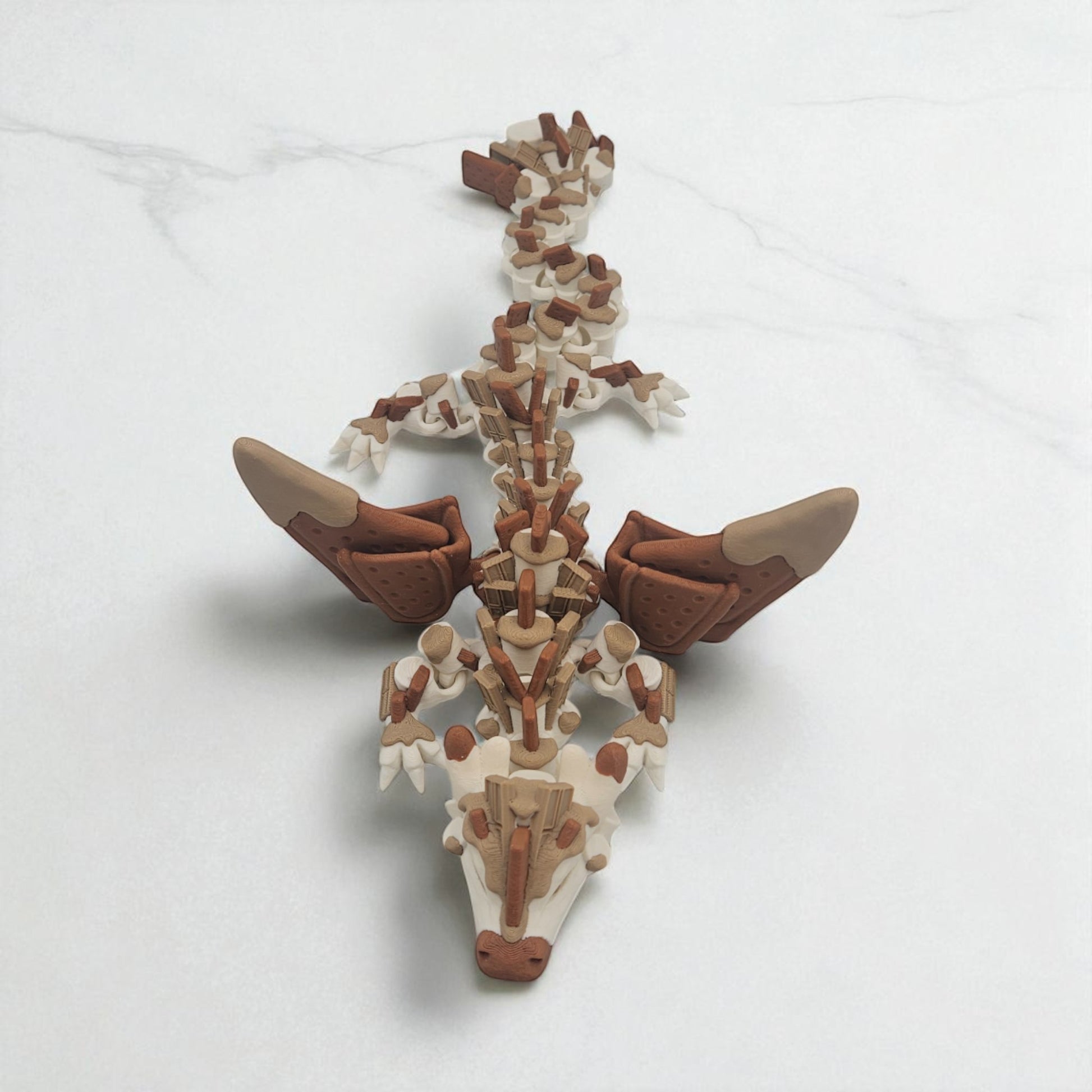 Bring the cozy vibes of summer nights and campfire fun to your desk with the S’mores-Themed Articulating Dragon Figurine! This sweet and squishy-inspired dragon features marshmallow-like segments, graham cracker textures, and chocolatey accents — all fully posable with smooth, satisfying joints.